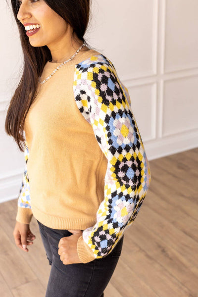 Get ready to cozy up in style with our Crochet It Ain't So Sweater! Made with love and care, this sweater features a unique crochet pattern on the sleeves that will help you stand out from the crowd. With a trendy tan color, this sweater is perfect for any occasion. Whether you're running errands or hanging out with friends, you'll be comfortable and fashionable all day long. Material: 65% Cotton, 35% Polyester Fit: True to size Our model is wearing a size small