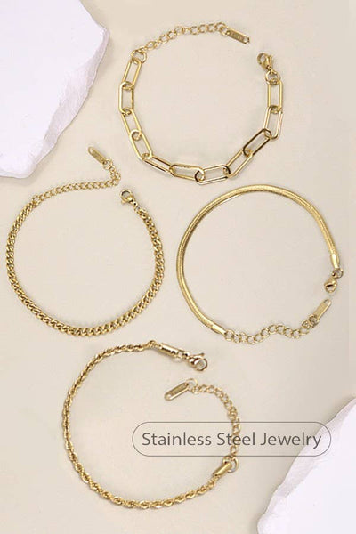 Stainless Steel Waterproof Tarnish-Free All Different Chain Bracelet, a unique and versatile accessory designed to elevate your style with modern flair. Our Bracelet features a captivating blend of various chain designs. Paperclip Chain, Curb Chain, Rope Chain, Herringbone Chain.